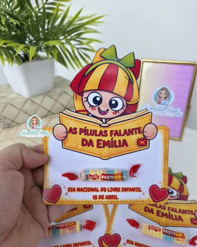 ✅️Inspirado no universo encantador da Emília, esse cartão traz a proposta lúdica das “pílulas falantes”, incentivando a imaginação e o gosto pela leitura de forma leve e envolvente.